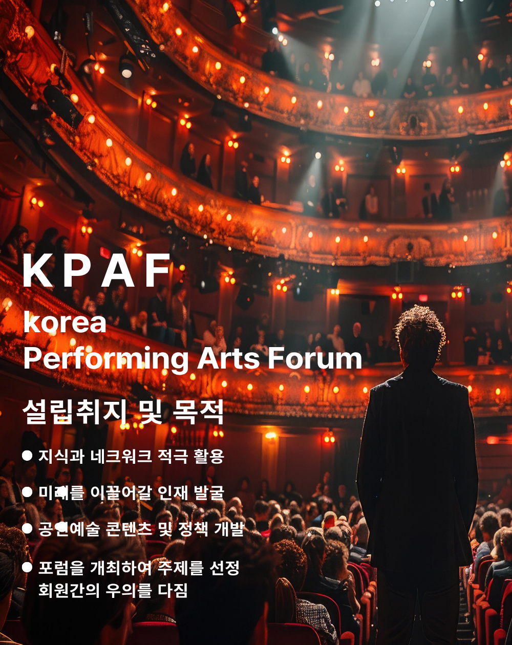 한국공연예술포럼은 2015년 7월 2일, 우리나라 공연예술의 발전을 염원하는 중견 문화기획자들이 뜻을 모아 출범하였으며,문화예술의 균형 있는 발전과 국민의 문화향유권 신장을 핵심 가치로 삼아, 공연예술계의 주요 현안을 주제로 지속적인 포럼을 개최해 왔습니다.